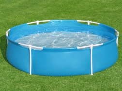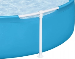 Bazén je vybaven stabilním, kovovým rámem, který zajišťuje adekvátní pevnost a trvanlivost celého konstrukce. Stěny jsou vyrobeny z třívrstvého materiálu – spojení odolného polyesteru a PVC, které chrání před poškozením.