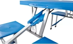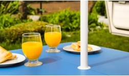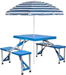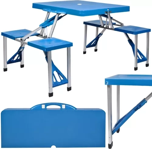 Užijte si pohodlné stolování venku kdekoliv – u karavanu, na zahradě i na pláži. Tento skládací set nabízí 4 plnohodnotná místa k sezení a pevný stůl, který se po složení promění v kompaktní kufřík s madlem. Díky promyšlené konstrukci jej rozložíte i složíte během chvilky a bezpečnostní pojistky zabrání nechtěnému otevření při přenášení.