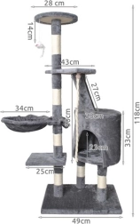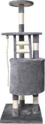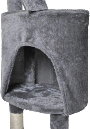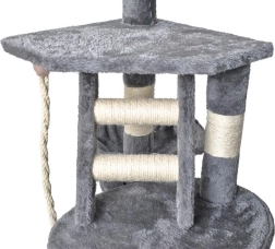 Škrabadlo je ekologicky vyrobeno z rostlinné sisalové šňůry, obohacené o měkký plyš na podstavě, a nabízí čtyři úrovně pro hraní, odpočinek a šplhání. Obsahuje útulný domeček s dvoustupňovými schůdky a zavěšenou hračkou pro aktivaci kočičí zvědavosti.