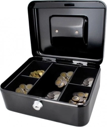 Pod vyjímatelnou mincovní vložkou se nachází praktický skrytý prostor pro bankovky, dokumenty nebo další cennosti. Díky přehlednému členění přihrádek budete mít drobné i bankovky vždy po ruce a rychle spočítané – ideální pro domácnost, kancelář i recepci.