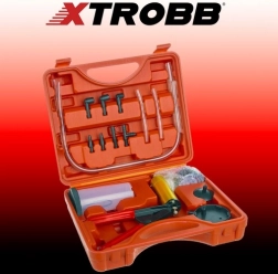 Dodává se jako kompletní sada v odolném kufříku, která zahrnuje pumpu s přesným manometrem, pružné hadice, rozmanité koncovky, spojky, nádobku a víčka (jedno s 2 vývody). Vše potřebné máte po ruce – bez nutnosti dokupovat příslušenství.