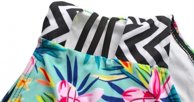 Směs 82 % polyesteru a 18 % elastanu je lehká, rychleschnoucí, pružná a odolná proti potu i opalovacím přípravkům.