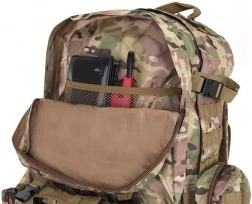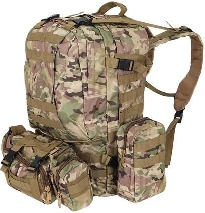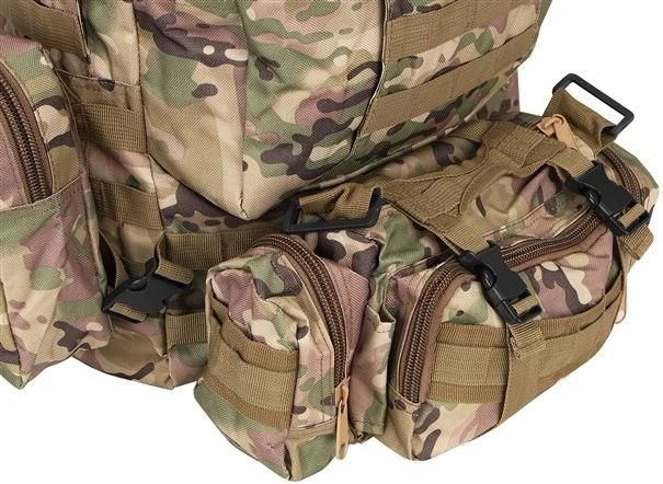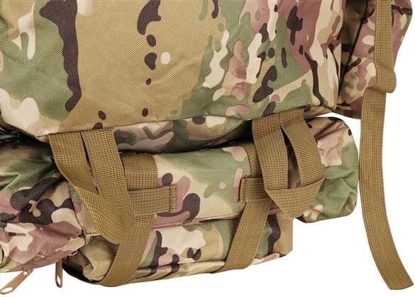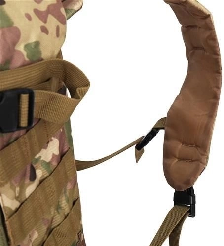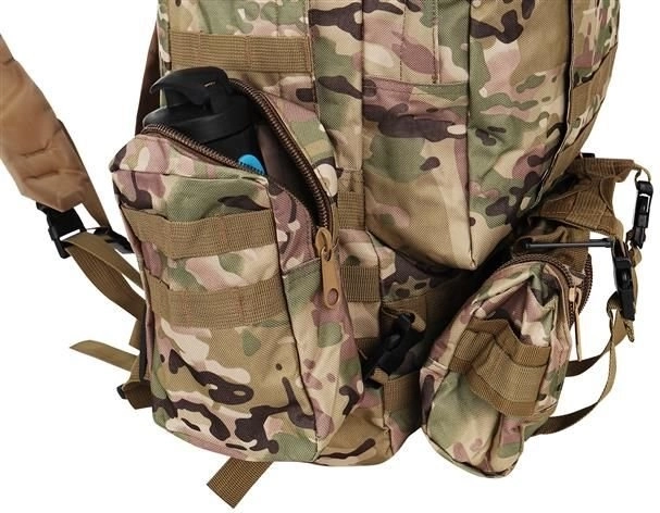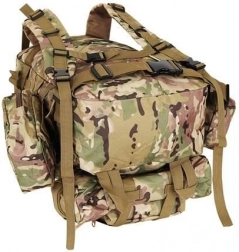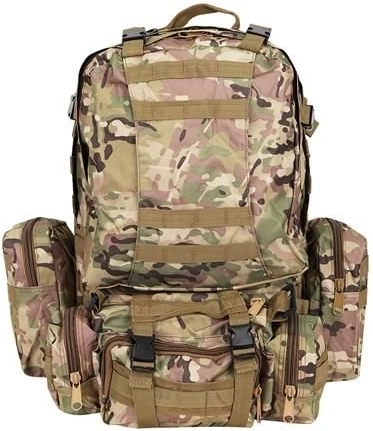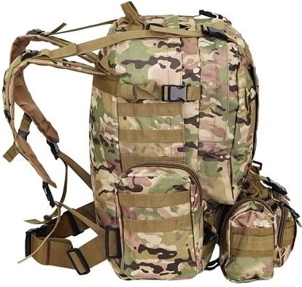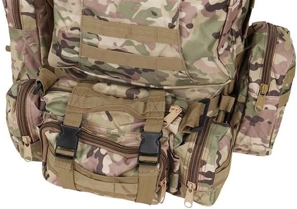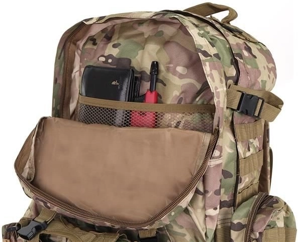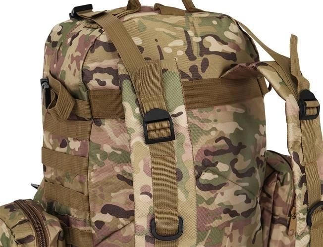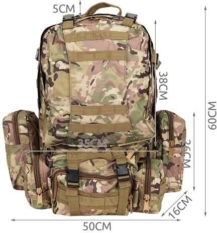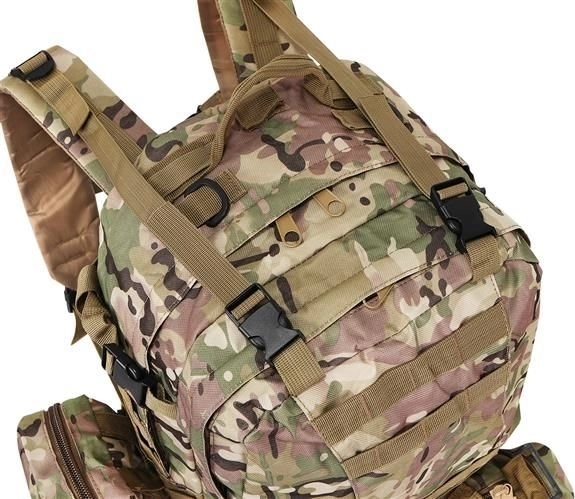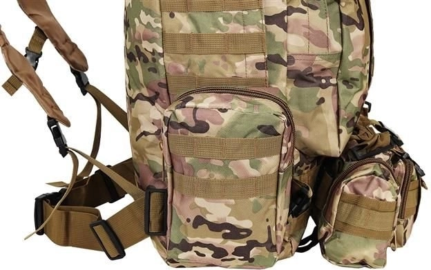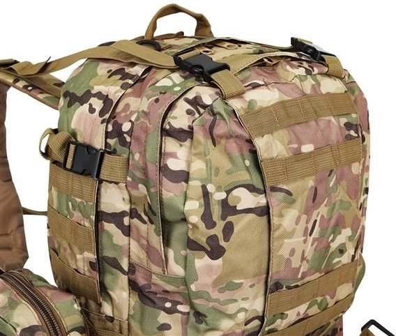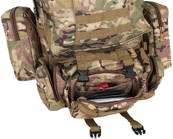 Velký vojenský batoh 45l nabízí 2 hlavní komory s přídavnými přihrádkami a tři odnímatelné kapsy, které poskytnou dostatek místa pro veškeré vaše vybavení. Vyroben je z tkaniny Oxford 900D, což zajišťuje odolnost vůči roztržení a opotřebení. Vnitřní podšívka z PVC zvyšuje odolnost vůči vodě, zatímco prodyšná síťovina na popruzích a zádech umožňuje lepší ventilaci.