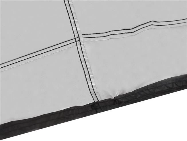Potah je vyroben z odolné tkaniny oxford 200D a je vybaven UV ochranou, která odráží světlo a chrání materiál před blednutím. Ideální pro použití po celý rok, zejména na podzim a v zimě.
