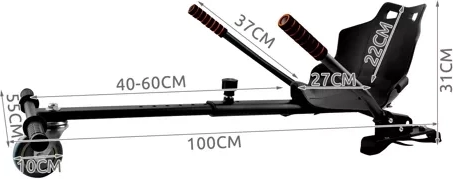 Robustní rám z kovu a odolných materiálů je navržen pro bezpečnou a dlouhou životnost. Plynulé nastavení délky 40–60 cm umožní přesné přizpůsobení postavě jezdce, zatímco přední otočné kolečko zajišťuje hladkou manévrovatelnost. Montáž je rychlá a bez nářadí – pomocí pevnostních svorek a nastavitelných popruhů na suchý zip nástavec snadno přichytíte k různým typům hoverboardů.