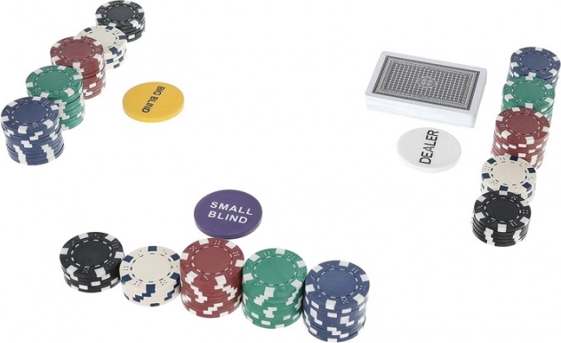 Součástí balení jsou také funkční žetony DEALER, SMALL BLIND a BIG BLIND pro přehlednou organizaci hry, 2x 54 karet pro plynulou rotaci balíčků a 5 kostek pro další stolní zábavu. Set je ideální pro domácí herny, párty i přátelská klání.
