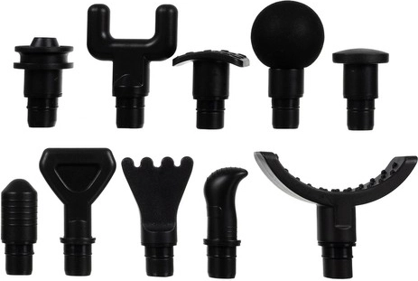 - Balení obsahuje: masážní pistole, pouzdro, USB kabel, nabíječka, 10 nástavců, taštička