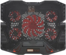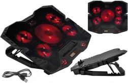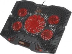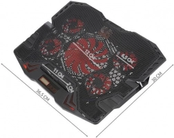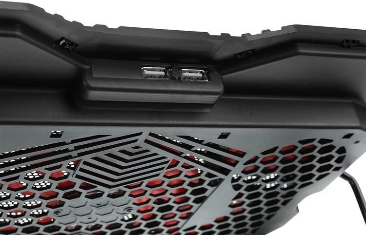 SPECIFIKACE - barva podsvícení: červená; chladící podložka pod notebook: 9"-17"; materiál: ABS + kovová síťovina; napájení: USB kabel (součástí balení); typ ložiska: hydraulické; počet USB portů: 2; rozměry stojanu (délka / šířka / výška) : 30 / 36,5 / 4 cm; hmotnost: 775 g; hmotnost s obalem: 1,115 kg.