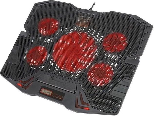 CHLADICÍ STOJAN LCD S NASTAVENÍM OTÁČENÍ - jedná se o kvalitní moderní chladící podložku, která je určena pro notebooky o velikosti 9 až 17''. Extrémně pevná a odolná konstrukce snadno unese váhu notebooku, je také lehký a pohodlný na přenášení. Disponuje multifunkčním LCD displejem, díky kterému můžeme snadno a rychle manévrovat mezi režimy a úrovněmi výkonu zařízení. Je vybaven 5 extrémně tichými ventilátory, díky kterým snižují provozní teplotu komponent notebooku, což výrazně prodlouží jeho životnost.
