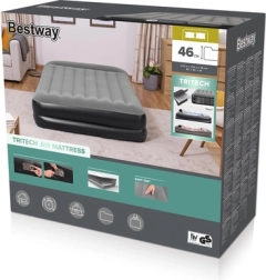 Užijte si klidný spánek díky zvýšené výšce 46 cm, která usnadňuje vstávání, a pevné vnitřní konstrukci Tritech™. Vestavěná elektrická pumpa 220–240 V rychle nafoukne i vyfoukne matraci a bezpečnostní ventil urychlí vypouštění vzduchu. Velurový povrch je příjemný na dotek a odolný proti opotřebení.