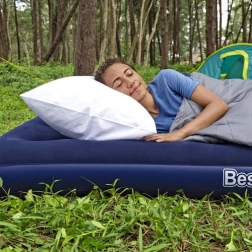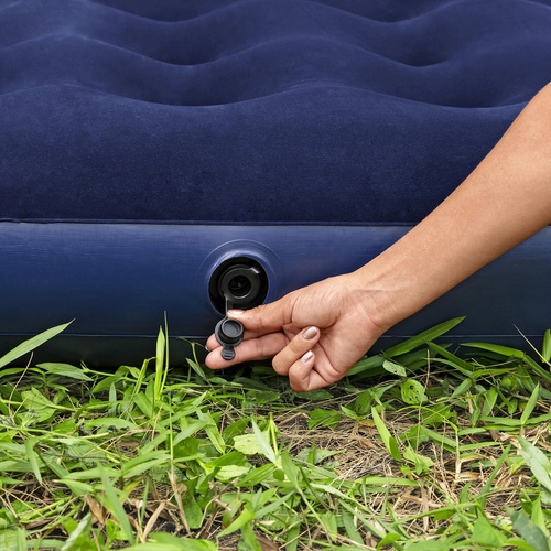 Díky bezpečnostnímu ventilu je manipulace s matrací rychlá a snadná – během chvilky ji nafouknete i vyfouknete. Nízký profil 22 cm usnadňuje vstávání a skladování, zatímco robustní PVC zvyšuje životnost. Součástí je voděodolná opravná záplata, která se hodí pro rychlé opravy na cestách.