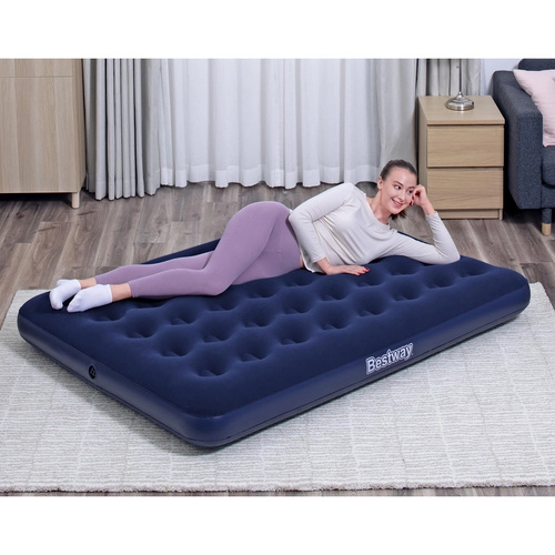Komfortní dvoulůžková nafukovací matrace BESTWAY s rozměry 191 × 137 × 22 cm nabízí měkký semišový povrch, pevnou konstrukci coil‑beam a bezpečnostní ventil pro snadné nafouknutí i vyfouknutí. Ideální pro kempování i hosty, s maximální nosností až 300 kg a opravnou záplatou v balení.