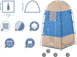 Tato přenosná převlékárna od značky Bestway nabízí dostatečný prostor pro převlékání, což je ideální pro pláže, jezera či kempy, kde potřebujete soukromí. Převlékárna je vybavena zipem pro snadný vstup a ventilování, a obsahuje tři neprosvítající okna pro efektivní větrání. Uvnitř naleznete také praktickou kapsu, do které můžete uložit mobilní telefon, klíče nebo peníze.