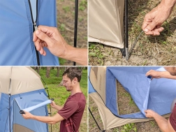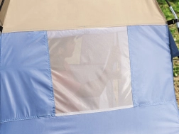 Převlékárna disponuje zipem, který umožní snadný přístup a ventilaci. Tři boční okna zajišťují účinné větrání.