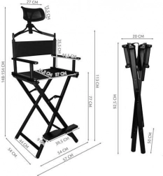 Tato židle je lehce přenosná a skládací. Složení je jednoduché a rychlé, což umožňuje snadné přemisťování mezi různými místy. To je činí ideální pro mobilní make-up umělce.