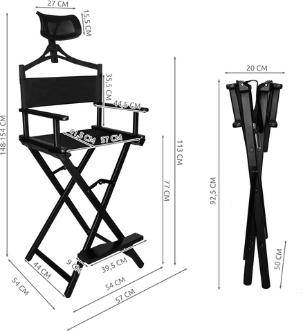 Hledáte spolehlivé, lehké a stabilní křeslo pro vizáž a make‑up? Toto vysoké režisérské křeslo z hliníku nabízí profesionální ergonomii, snadné skládání a odolné materiály. Sedák a opěrák z tkaniny Oxford 600D jsou voděodolné a snadno se udržují, odnímatelný zaglavník zvyšuje komfort při delších sezeních.