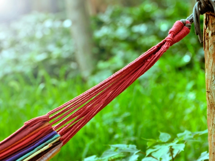 Silné pletené závěsné šňůry a hustě tkaná látka zajišťují stabilitu a dlouhou životnost. Maximální doporučená nosnost je až 200 kg.