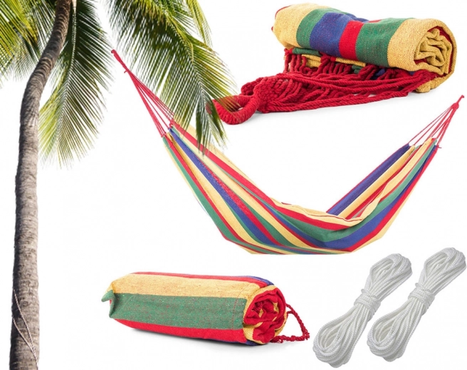 Tato pruhovaná houpací síť přinese do vaší zahrady či na balkon okamžitý klid a pohodlí. Odolná, prodyšná textilie a silná pletená lana zajišťují bezpečné a příjemné houpání pro jednu i dvě osoby. Po srolování zabírá minimum místa a díky přiloženým šňůrám ji snadno zavěsíte mezi stromy nebo na stojan.