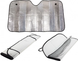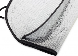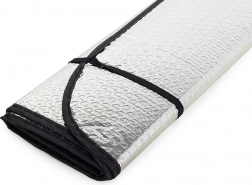 Reflexní clona na čelní sklo s bublinkovou izolací výrazně snižuje zahřívání interiéru a brání vyblednutí čalounění i poškození elektroniky sluncem. Díky oboustranně odrážejícímu povrchu funguje spolehlivě v létě proti horku a v zimě pomáhá zamezit namrzání skla.