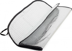 Metalizovaný povrch s bublinkovou izolací odráží sluneční paprsky, snižuje teplotu v kabině a chrání palubní desku i čalounění před vyblednutím.