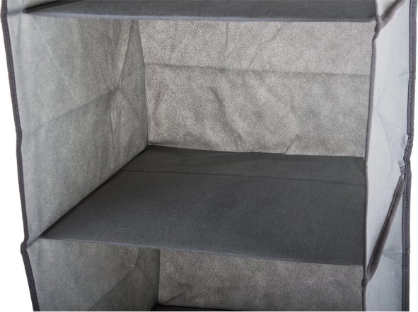 Tento závěsný organizér šetří místo a umožňuje snadné rozdělení oblečení díky třem úrovním polic.