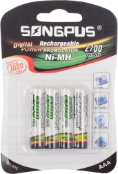 Praktická sada obsahuje 4 nabíjecí baterie AAA (R3) s vysokou kapacitou, ideální pro dálkové ovladače, fotoaparáty, svítilny, MP3 přehrávače a další zařízení. Baterie nabízí rychlé nabíjení, bez paměťového efektu a dodávají se v originálním balení.