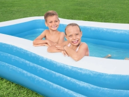 Nafukovací bazén Deluxe Blue o rozměrech 305 x 183 x 56 cm je ideální pro letní osvěžení na zahradě. Vyroben z odolného materiálu PVC, nabízí pohodlí a bezpečnost díky širokým bočním stěnám.