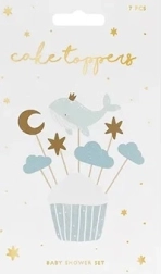 Rozkošné dekorace na muffiny s motivem velryby rozzáří každý dětský večírek či oslavu. Mix vzorů a barev dodá cupcakes hravý vzhled. V balení je 7 kusů o výšce cca 11–13,5 cm – ideální pro rychlé a efektní zdobení.