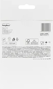 Balení obsahuje 7 kusů dekorací. Doporučujeme používat na nejedlou část dezertu (zápich není určen ke konzumaci).