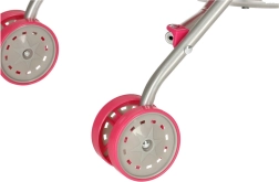 Kočárek má profilované úchyty, což usnadňuje ovládání během jízdy a zajišťuje pohodlnou manipulaci. Funkčnost je podtržena skládací konstrukcí, která umožňuje jednoduché uložení kočárku během cestování nebo doma, pokud není zrovna používán.