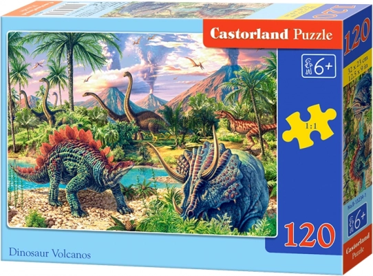 Objevte zábavné a vzdělávací puzzle s motivem Dinosaur Volcanos. Díky 120 dílkům a pestrým barvám si děti procvičí logické myšlení, rozpoznávání tvarů a barev a naučí se trpělivosti a soustředění. Po složení vznikne kvalitní obrázek o rozměru 32 × 23 cm, který potěší každého milovníka dinosaurů.