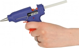 Pohodlná rukojeť usnadňuje nanášení lepidla. Tyčinky lepidla se tají a jejich průtok můžete regulovat pomocí spouště.