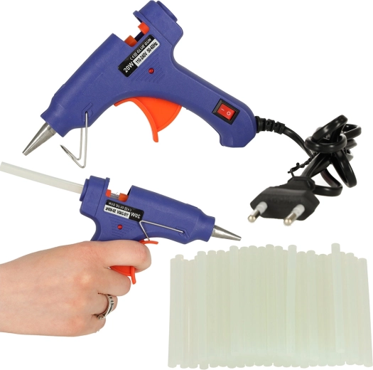 Použití lepičky je nesmírně jednoduché. Stačí vložit tyčinku lepidla do otvoru na zadní straně, připojit ji k elektrické síti a počkat, až se zahřeje. Lepička je napájena ze sítě, takže se rychle rozehřeje! Jakmile dosáhne vysoké teploty, stačí stisknout spoušť a horké lepidlo vytéká z trysky.