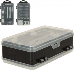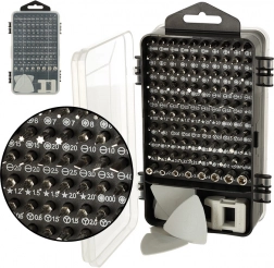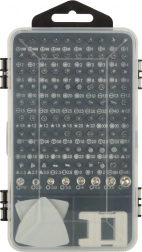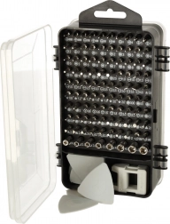 Součástí balení je 96 různých bitů (Torx, Torx s otvorem, Hex, ploché, Phillips, PZ, Square, trojúhelník, pentalobe, microstix, ořechy a další), flexibilní nástavec pro špatně přístupná místa, otevírací nástroje, přísavka, pęseta a magnetizér/demagnetizér pro lepší držení šroubků. Oboustranné pouzdro s popsanými pozicemi zajistí přehledné uložení a rychlé hledání správného dílu.