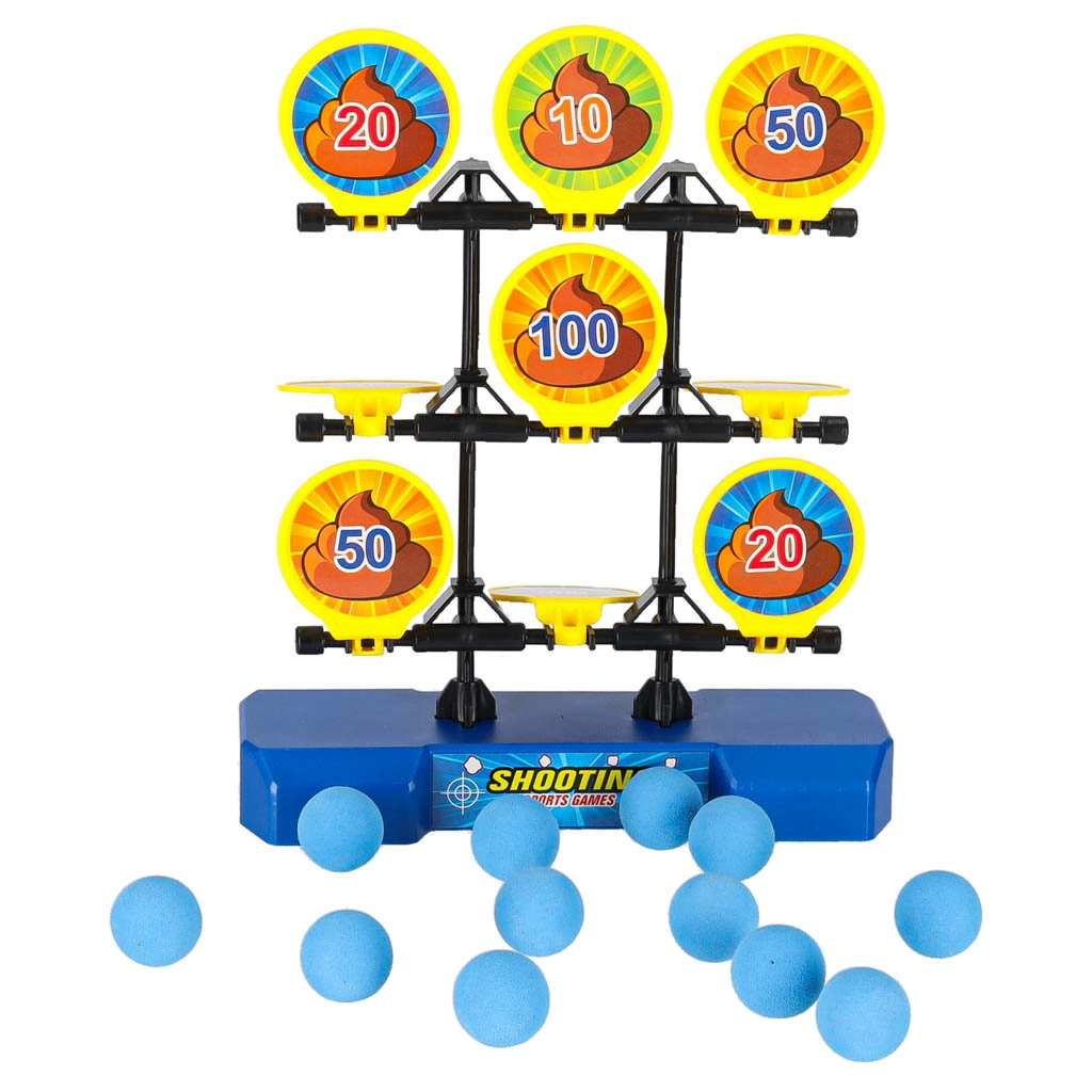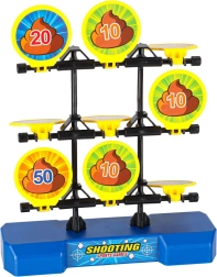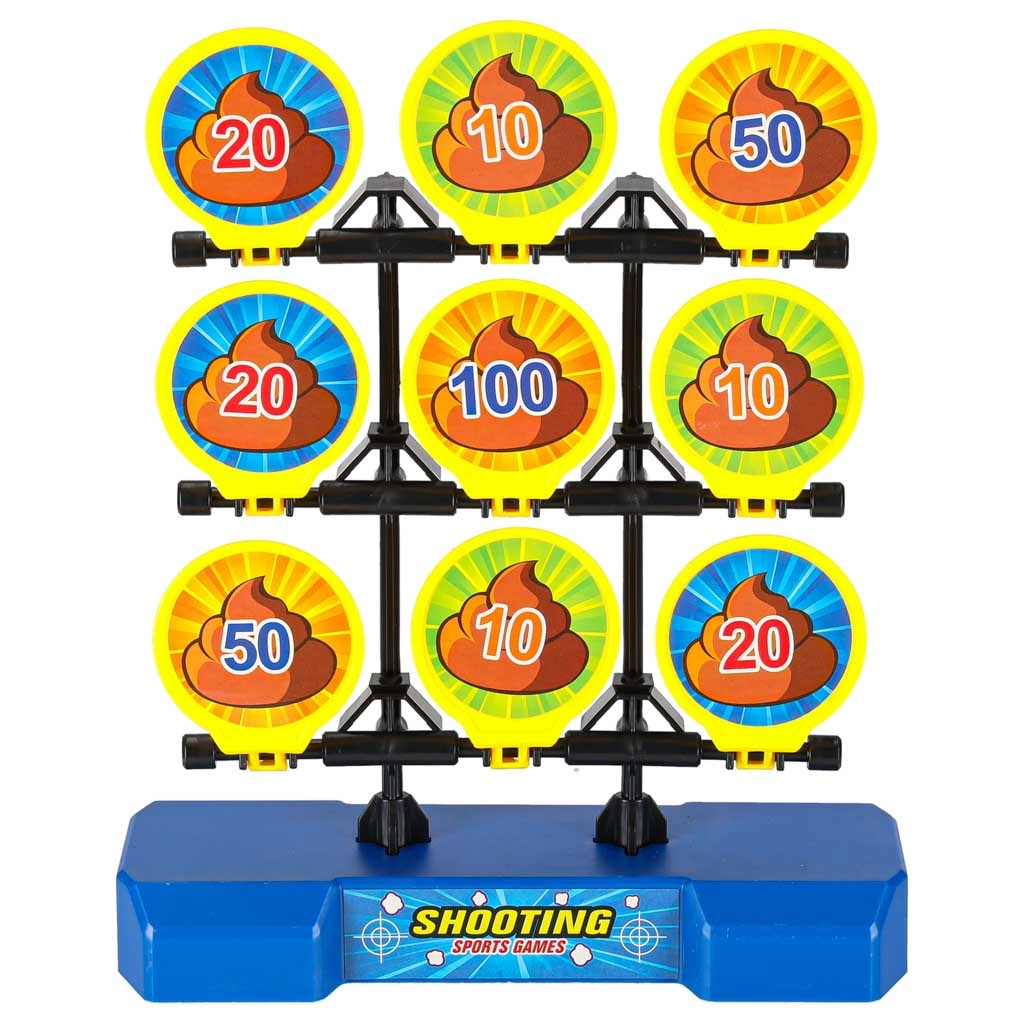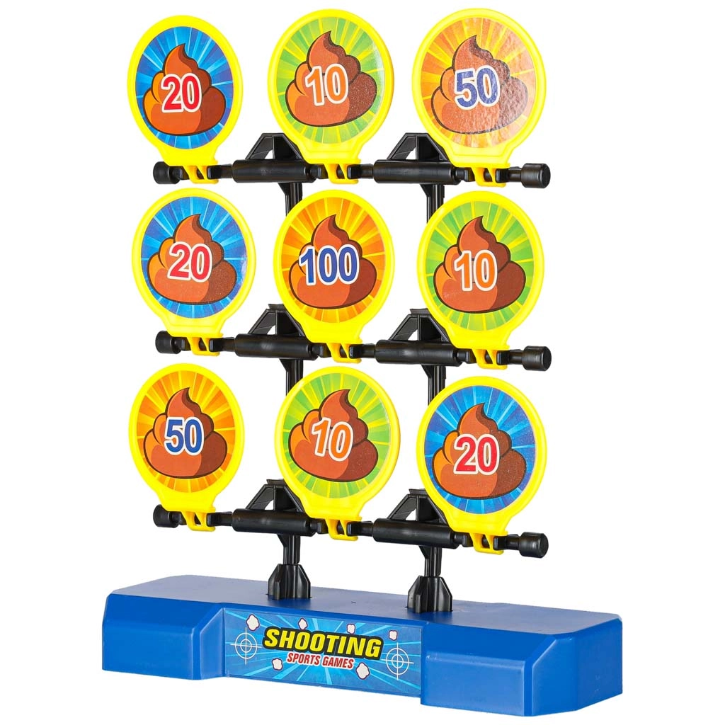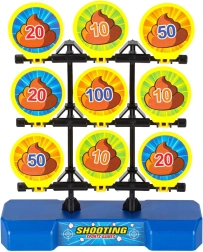 Otevřete turnaj ve střelbě na cíl! Nabijte blaster míčkem zepředu, natáhněte pumpu a výstřelem srazte co nejvyšší bodový terč. Devět sklápěcích cílů s hodnotami (10–100) se po zásahu převrátí, takže hned vidíte, kolik bodů získáváte. Měkké pěnové míčky jsou šetrné k nábytku a bezpečné pro domácí i venkovní hru.