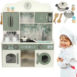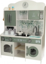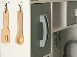 Kuchyňka obsahuje mikrovlnnou troubu, pračku, piekarnik, a kávovar, což umožňuje dětem zkoumat a napodobovat skutečné kuchyňské úkony.