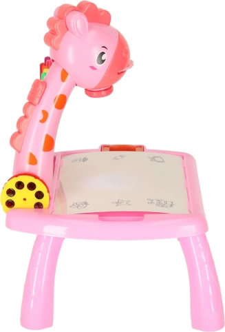 Růžový dětský projekční stolek na kreslení žirafa
