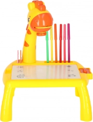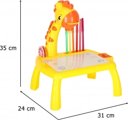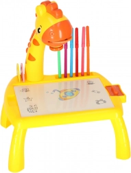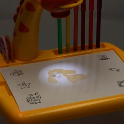 Tento roztomilý stolní projektor ve tvaru žirafy zpestří každé tvoření. Po vložení jednoho ze tří kotoučů s obrázky a zapnutí projekce se na plochu promítne motiv, který děti snadno obkreslí. Díky stírací podložce mohou zkoušet znovu a znovu – bez plýtvání papírem.