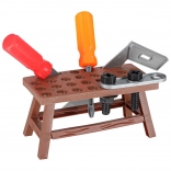 Stabilní plastový stolek s děrovanou deskou, svěrkou a držáky nástrojů vytvoří zábavné pracovní prostředí pro každého malého kutila.