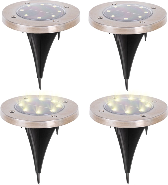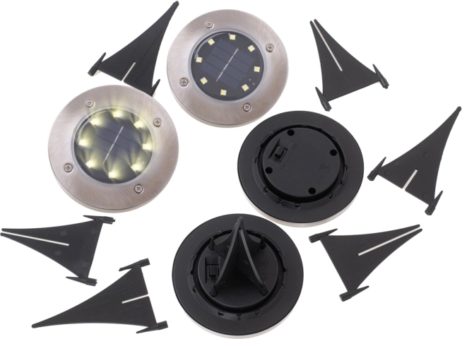 Solární zapuštěná svítidla kombinují moderní design a praktickou funkčnost. Plochá konstrukce se nenásilně začlení do terénu, zvýrazní okraje cest, příjezdové cesty či květinové záhony a vytvoří příjemnou atmosféru bez potřeby kabeláže. Každá lampička má 8 úsporných LED s teplým odstínem a akumulátor Ni-MH 600 mAh, který se přes den dobíjí sluncem a večer svítí až 8–16 hodin (dle podmínek).
