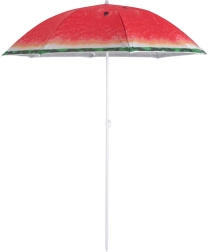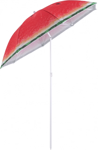Rozlučte se s úmorným sluncem a užijte si příjemný stín kdykoli a kdekoli. Tento skládací slunečník s hravým motivem melounu nabízí průměr 150 cm, nastavitelnou výšku a naklápěcí kloub pro optimální ochranu před sluncem. Díky kovové konstrukci a odolnému polyesteru je ideální na pláž, zahradu, terasu i balkon.