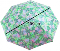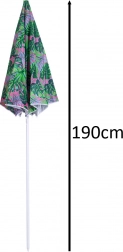 Praktický a stylový slunečník s tropickým motivem poskytne dostatek stínu pro celou rodinu. Díky průměru 150 cm a nastavitelné výšce až 190 cm si snadno přizpůsobíte ochranu proti slunci přesně podle potřeby. Mechanismus naklápění umožní rychle změnit úhel a odstínit ostré paprsky bez přenášení slunečníku.