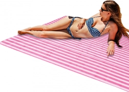 Růžová skládací plážová a pikniková deka