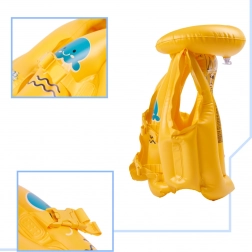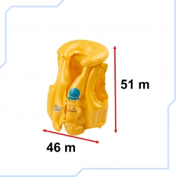 Tato nafukovací vesta je ideální pomůckou pro děti od 3 do 6 let, které se učí plavat. Nabízí tři komory pro nafukování, což zvyšuje bezpečnost při plavání – i při poškození jedné komory zůstává vesta nadnášení. Jasně žlutá barva vesty zajišťuje dobrou viditelnost ve vodě a nastavitelné plastové přezky umožňují snadné přizpůsobení.