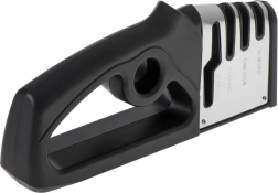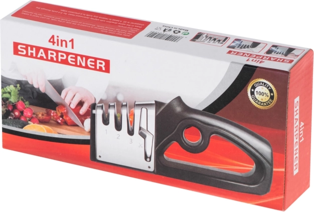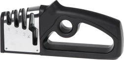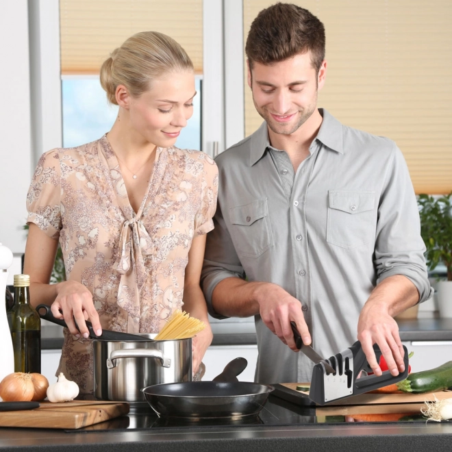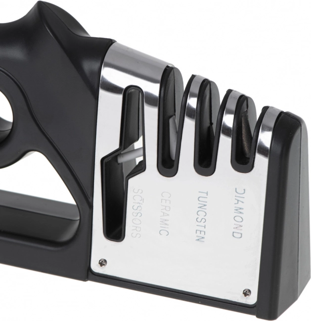 Univerzální brousek 4v1 je navržený pro kompletní péči o kuchyňské nože i nůžky. Tři po sobě jdoucí stupně z různých materiálů obnoví ostří od hrubého srovnání až po jemné doleštění, takže dosáhnete ostrosti jako z profesionální kuchyně. Čtvrtý slot je určený pro rychlé a přesné broušení nůžek.