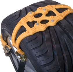 Tyto univerzální sněhové návleky jsou skvělou alternativou ke klasickým řetězům – nasadíte je rychleji, pohodlněji a čistěji. Jsou navrženy pro jízdu po sněhu a zledovatělých vozovkách, kde zvýší trakci a stabilitu. Celá sada je vyrobena z kvalitního silikonu s kovovými protiskluzovými prvky pro dlouhou životnost.