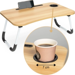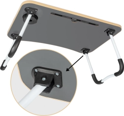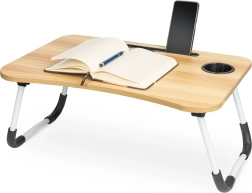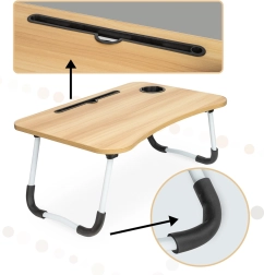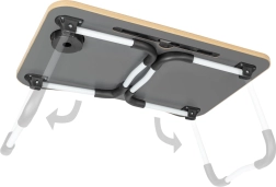 Stůl je vybaven slotem pro tablet či telefon a otvorem pro kabely, což zvyšuje jeho praktičnost. Pokud hledáte dokonalého pomocníka pro pohodlnou práci z jakéhokoli místa, je tento skládací stůl na notebook tou správnou volbou.