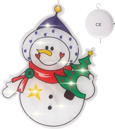 Závěsná vánoční dekorace ve tvaru sněhuláka přináší do interiéru útulné LED osvětlení a veselý zimní motiv. Napájení na baterie zajišťuje bezdrátový provoz, takže ji můžete umístit, kamkoli potřebujete – zejména na okno, dveře nebo hladkou stěnu.