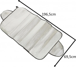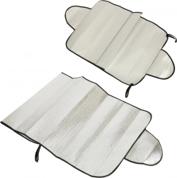 Univerzální clona na čelní či zadní sklo chrání vůz před sluncem, UV zářením, námrazou a sněhem. Snadno se montuje přivřením bočních okrajů do dveří, je lehká, skládací a z odolného nepropustného materiálu s termoizolační vrstvou.