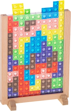 Hravost této hračky podněcuje k vytváření vzorů a rozvíjení dětské představivosti. Barevné kostičky upoutají pozornost a díky svému jednoduchému designu se hra stane i dekorací v dětském pokoji. Společné hry utužují rodinné vazby a pomáhají dítěti rozvíjet zručnost a koordinaci očí a rukou.